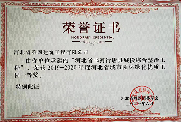 八分公司承建的行唐郜河项目喜获河北省城市园林绿化优质工程一等奖